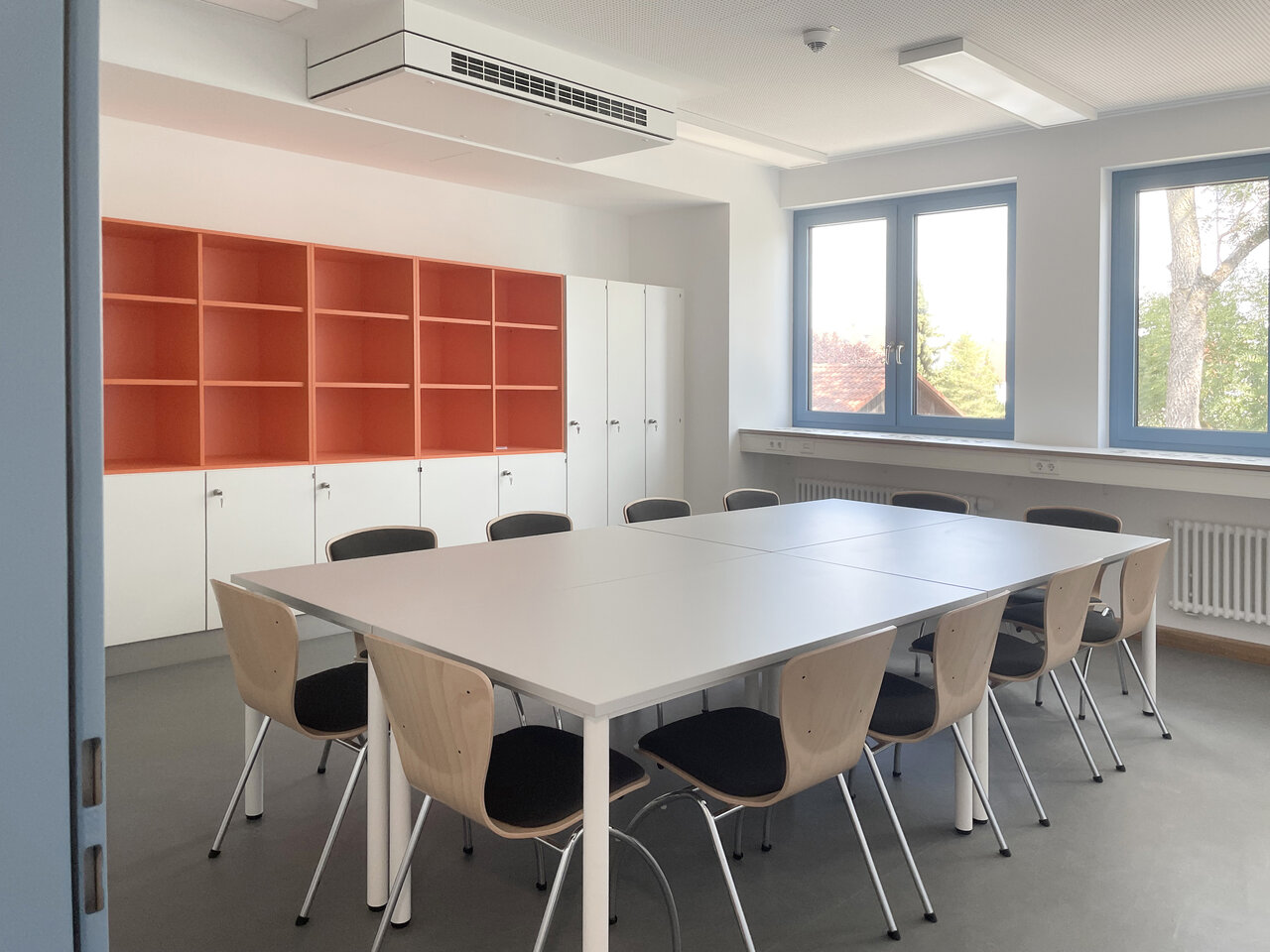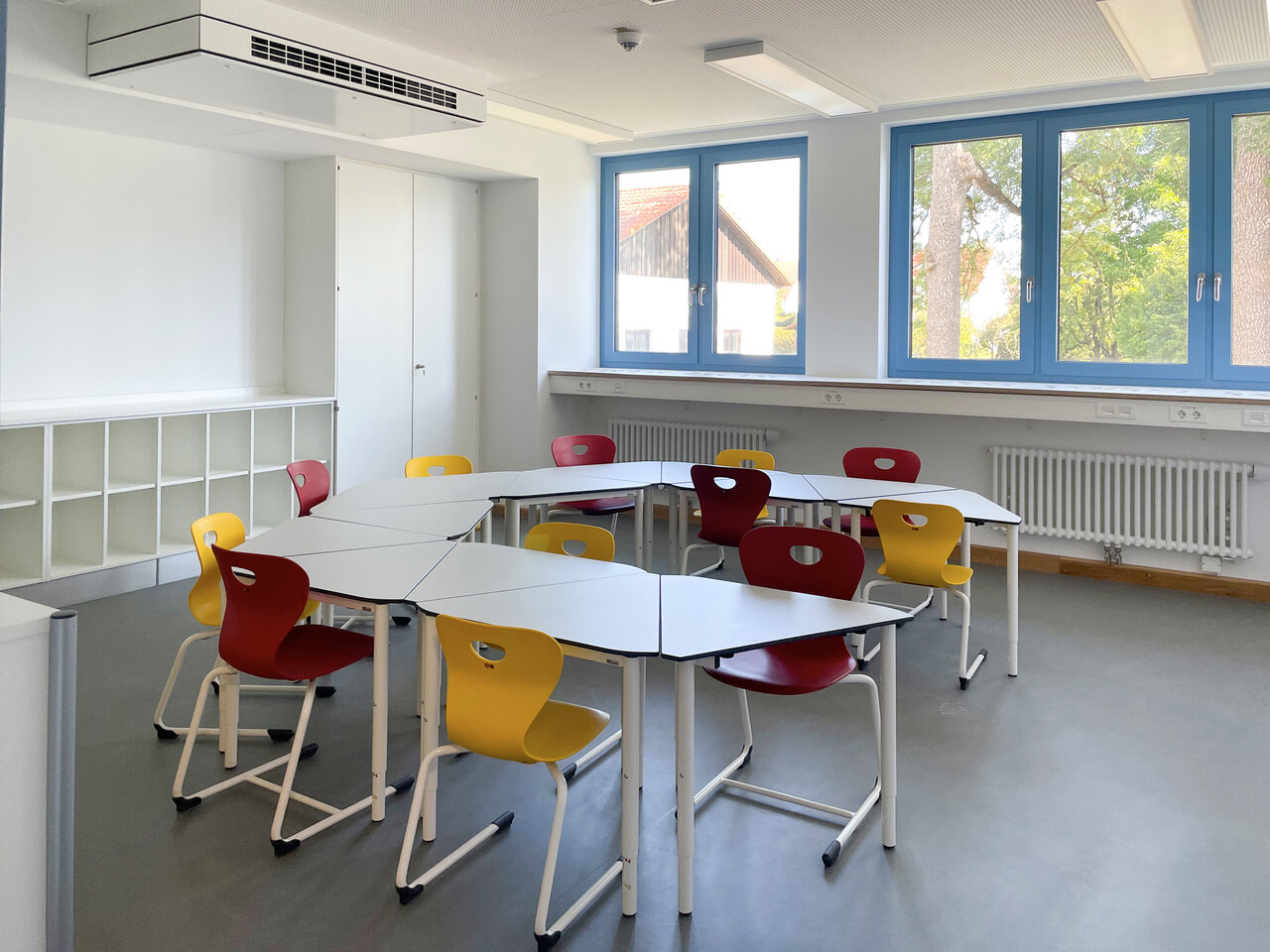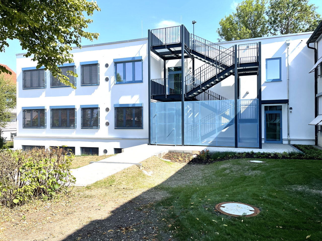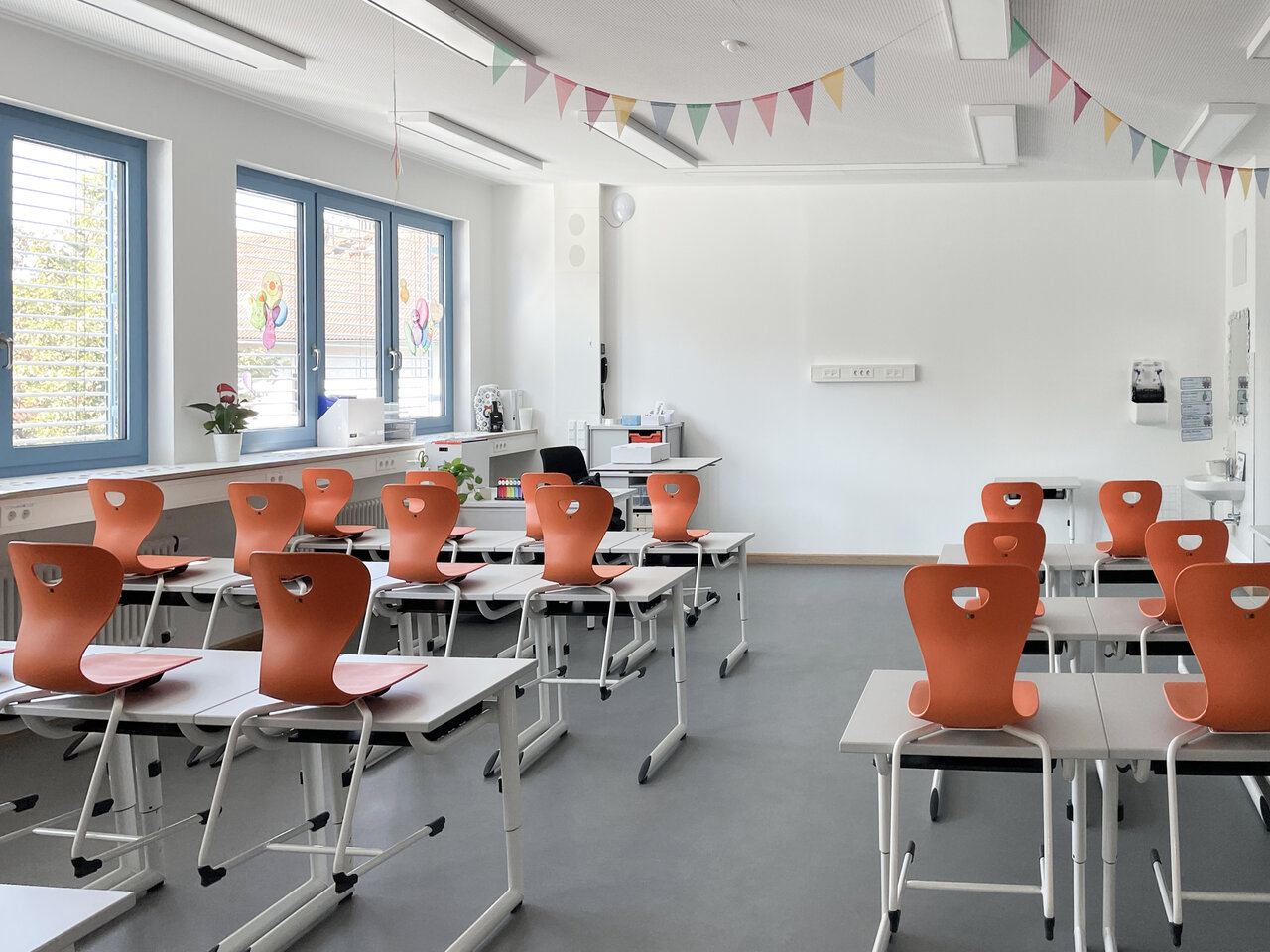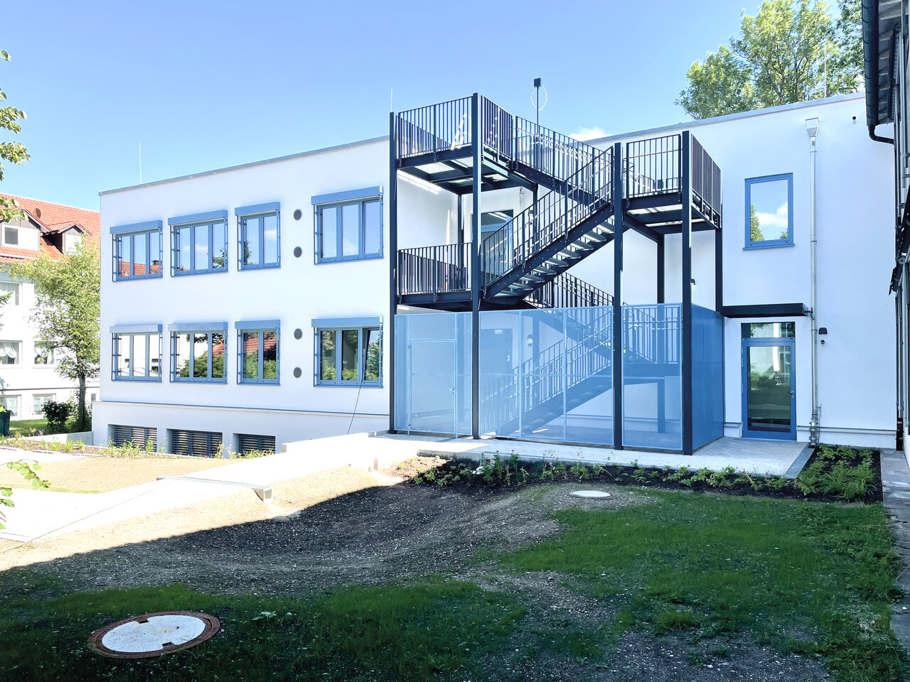 | Aufgrund der stetig wachsenden Schülerzahlen in der Gemeinde Hallbergmoos wurden wir beauftragt, Termin- und kostensicher einen Anbau für die bestehende Grundschule Hallbergmoos zu realisieren. Auch die Möblierung des Anbaus wurde in unserem Haus geplant und umgesetzt. Nach der Planungsphase, die im September 2020 begann, konnte bereits im Dezember 2021 Richtfest gefeiert werden und der komplette Innenausbau bis Ende des Schuljahres 2022 inklusive der Möblierung fertiggestellt werden. Der 2-geschossige Anbau mit zusätzlichem Kellergeschoß bietet Raum für 4 neue Klassen, 2 neue Werkräume, insgesamt 6 Gruppen- bzw. Vorbereitungsräume, neue Sanitärbereiche und großzügige Garderobenflächen in jeder Etage. |