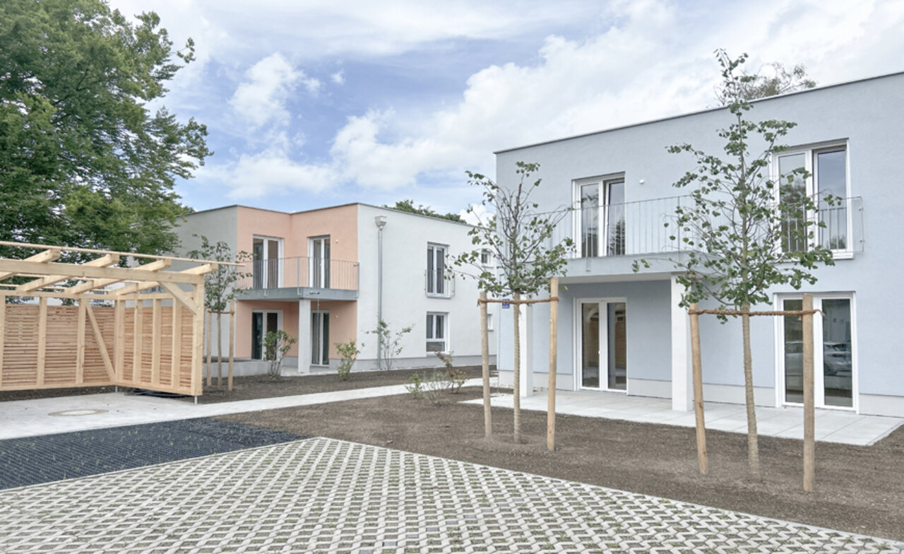 | In Lochhausen, dem westlichsten Stadtteil von München, errichtete die Evangelische Kirche eine kleine Wohnanlage für den sozialen Wohnungsbau. Die vier zweigeschossigen, nicht unterkellerten Gebäude beinhalten insgesamt 15 Wohnungen, jeweils mit Balkonen bzw. Terrassen oder Dachterrasse. Eine der Wohnungen ist rollstuhlgerecht ausgebaut. Im Erdgeschoss eines der vier Gebäude befindet sich ein Gemeinde-saal der Evangelischen Kirche sowie die zugehörigen Nebenräume. Bei maximaler Ausnutzung des Baurechts fügt sich die Wohnanlage gut in die umliegende Bebauung ein. Der alte Baumbestand wurde so gut wie möglich erhalten. Die Anzahl der PKW-Stellplätze konnte in Verbindung mit einem Mobilitätskonzept auf ein Minimum reduziert werden. |